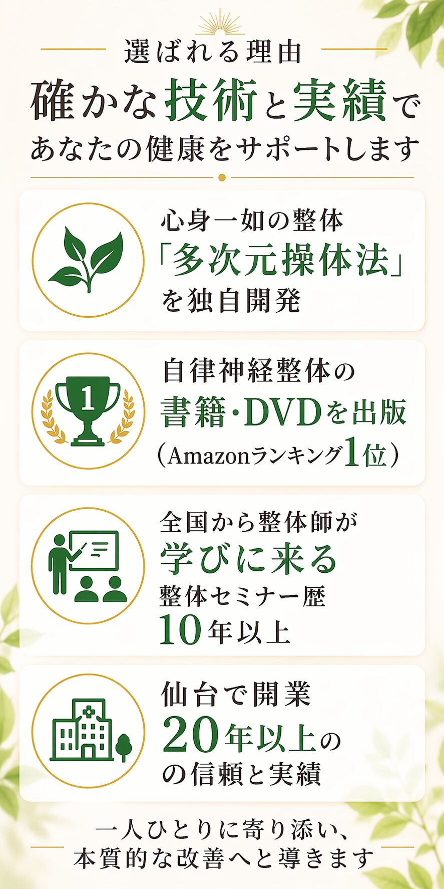 🌿 ホリスティック整体「多次元操体法」を独自開発