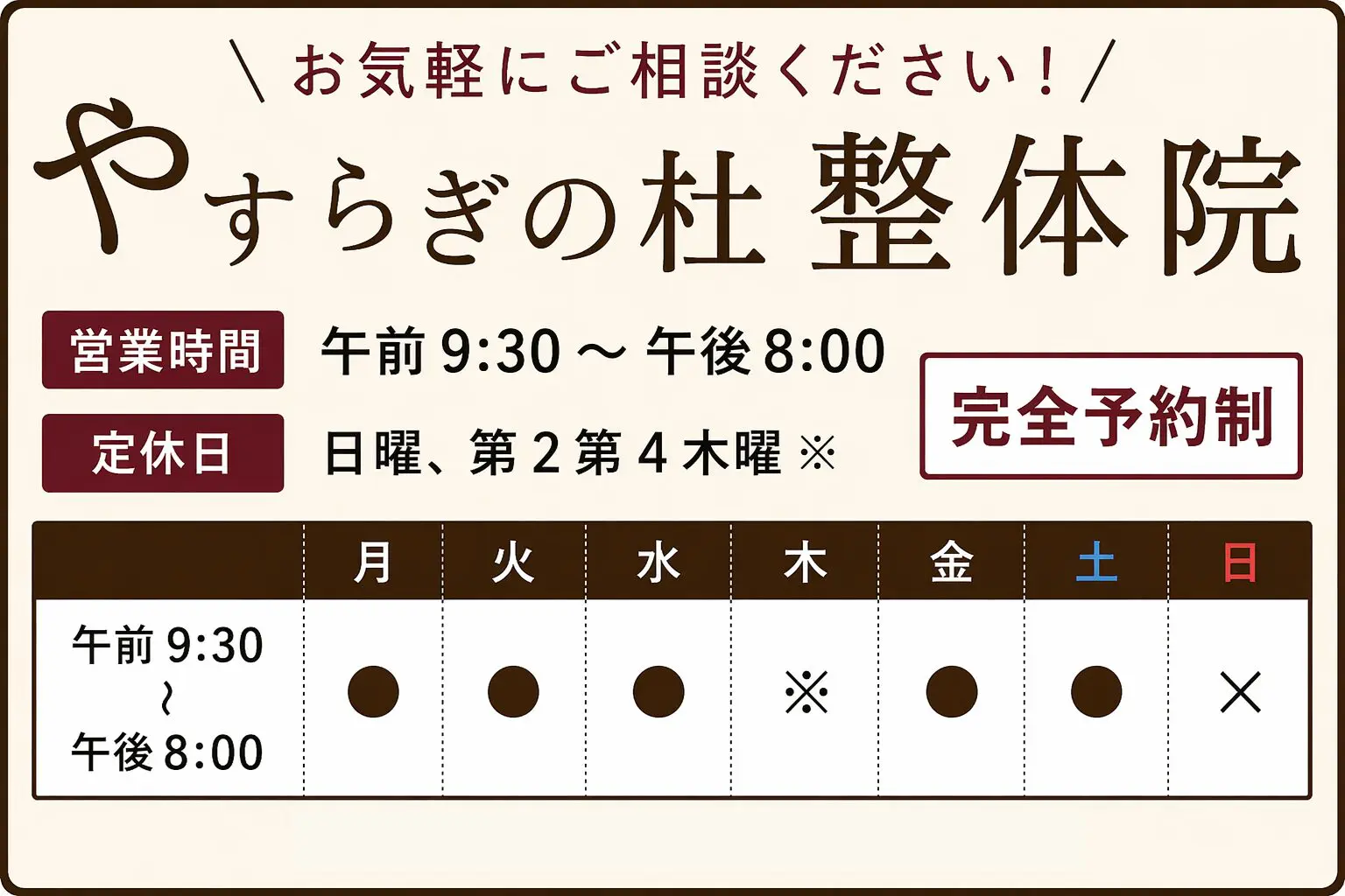 施術者との信頼関係や安心感もとても大切で、安心して身を委ねられる環境だからこそ、体も心も本当の自分に近づけます。整体は、そんな「本来の自分に還るための時間」としても役立つのです。