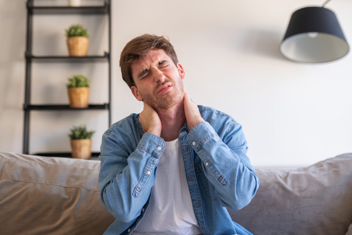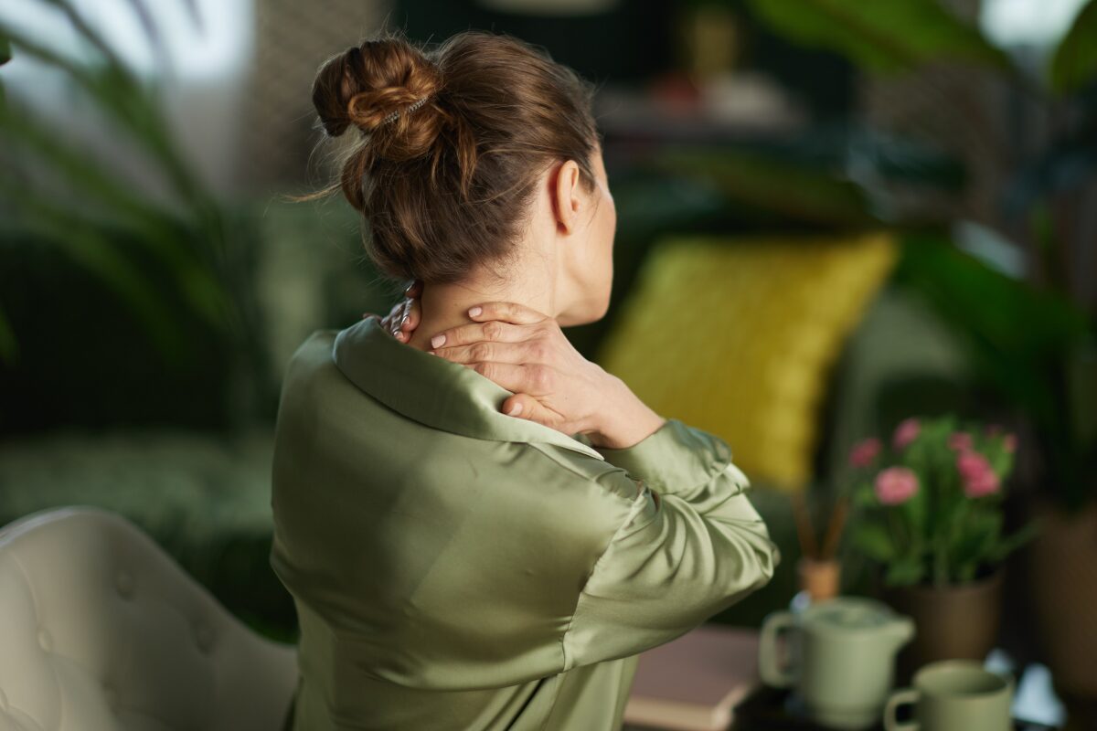 この状態が長引くと、筋肉は休むタイミングを失い、首や肩、背中などに強いこわばりが生まれます。特に首まわりは精神的ストレスの影響が出やすく、無意識に肩を上げたり、歯を食いしばったりして、緊張をため込みやすい部分です。